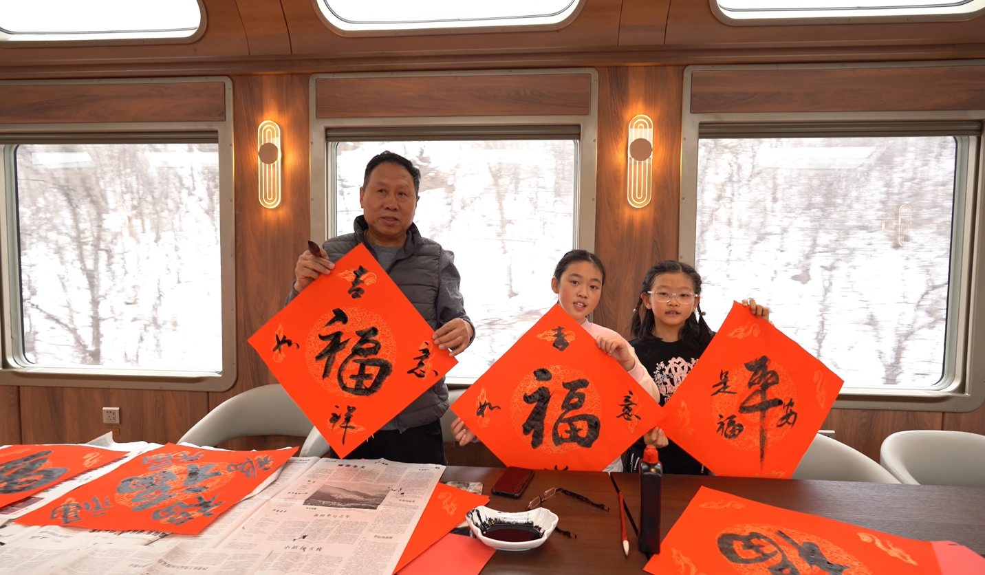 在會議車廂,司乘人員為乘客準(zhǔn)備了筆墨紙硯,大家紛紛拿起毛筆,揮毫潑墨。一副副春聯(lián)和福字在大家的筆下誕生,有的蒼勁有力,有的清新秀麗,為蛇年春節(jié)增添了文化氛圍。心靈手巧的游客還拿起剪刀,將一張張紅紙剪成各種各樣的圖案,這些精美的剪紙作品不僅是藝術(shù)品,更是游客對新年的美好祝福。