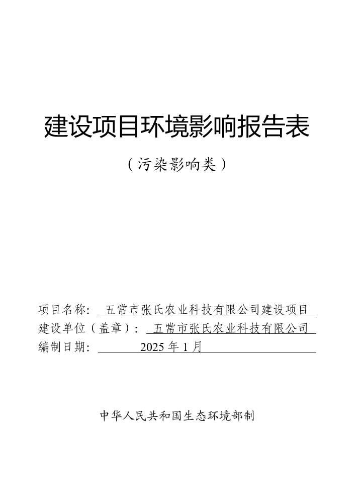 五常市張氏農(nóng)業(yè)科技有限公司建設(shè)項目環(huán)境影響報告表